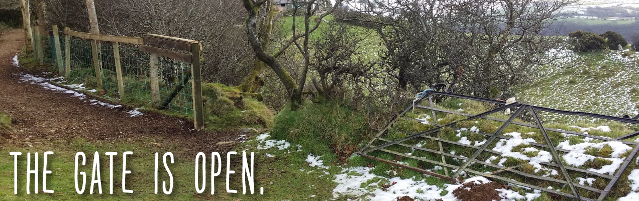 Roy, the pastor, told a story of a gate at Ffald y Brenin, which was between the path from the house to the cross on the hill. It had fallen down and Roy felt that it meant the path is open. There’s no gate! No barrier.