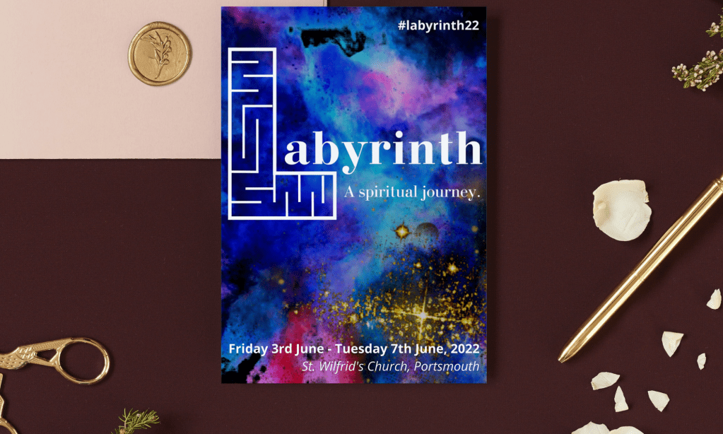 Labyrinth Art Installation printed materials: flyer, poster, banner, Eventbrite assets.