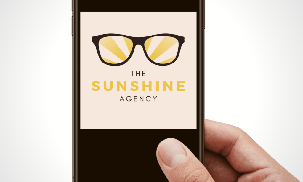 Sunshine Agency Brand Identity: logo suite, social media hero images, business cards, illustrations.